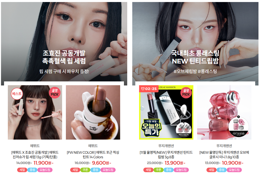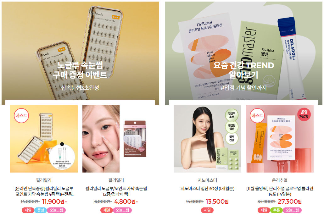 - 온라인몰 전용 특가, 앱 전용 타임세일 등이 함께 붙는 경우가 많음